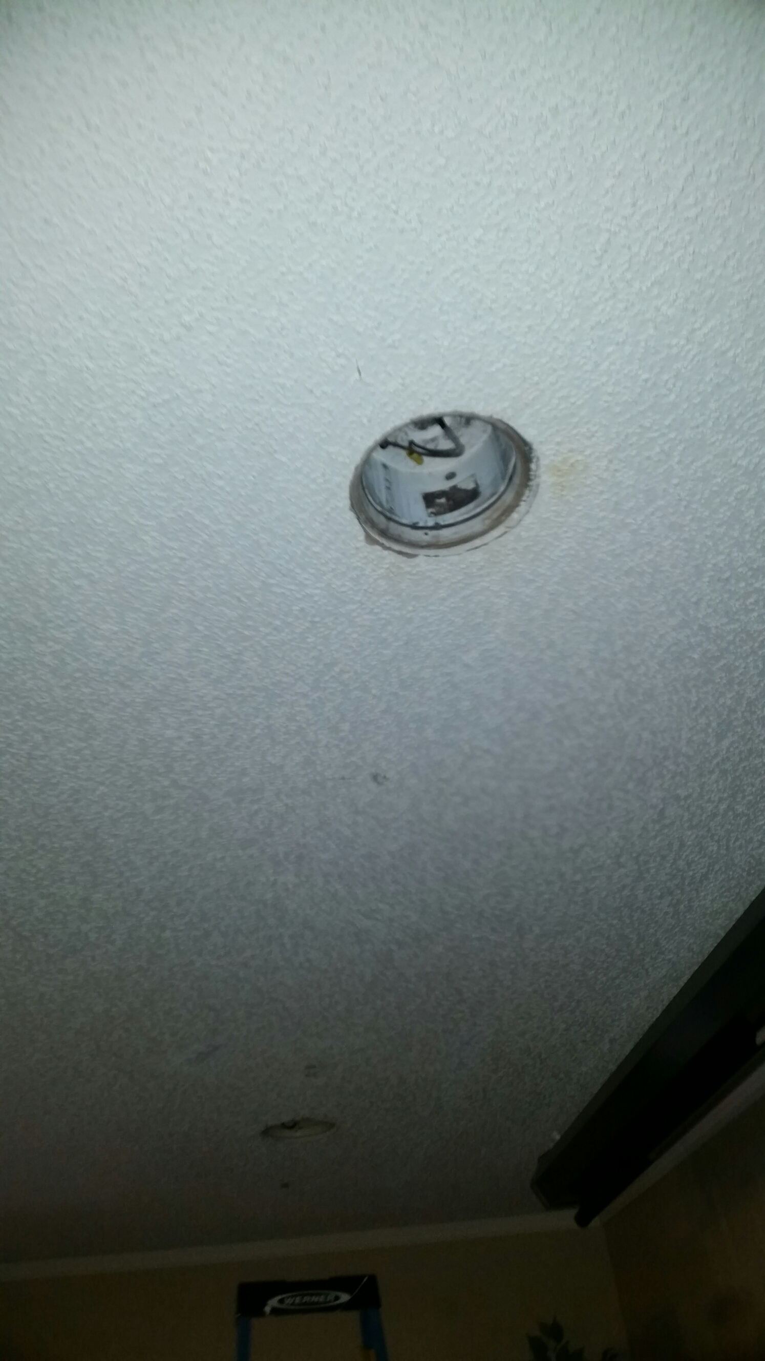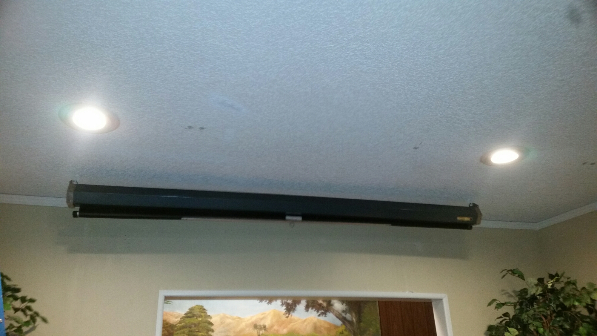 The fluorescent lights in the stage area of the sanctuary hid a pair of can lights. After a trip to Lowe’s and some work, they’ve been swapped.